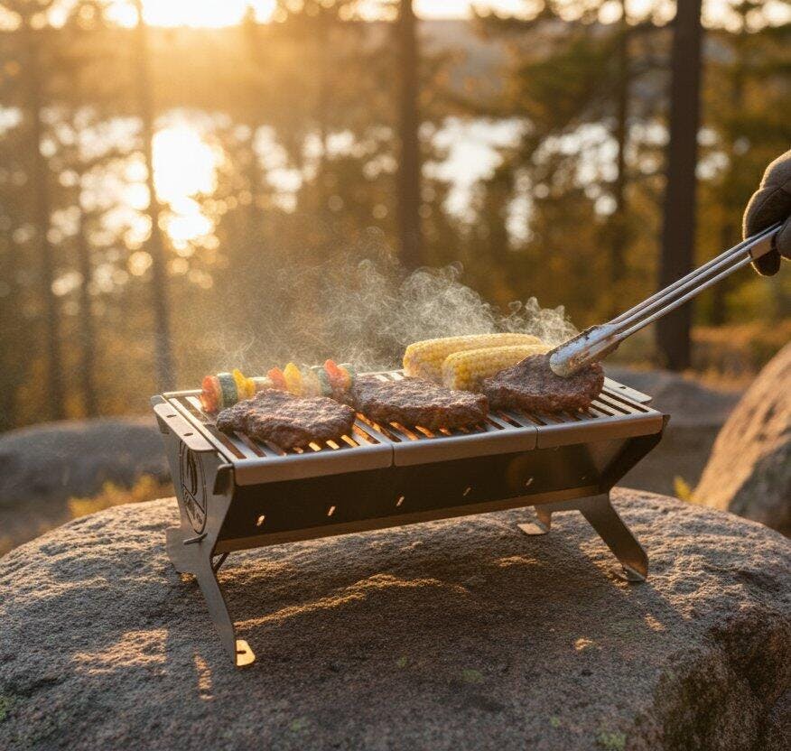 Asador compacto y resistente, fabricado en acero inoxidable de alta calidad, ideal para parrilladas al aire libre. Su diseño portátil y fácil de transportar lo convierte en la opción perfecta para campamentos, terrazas, jardines o viajes.